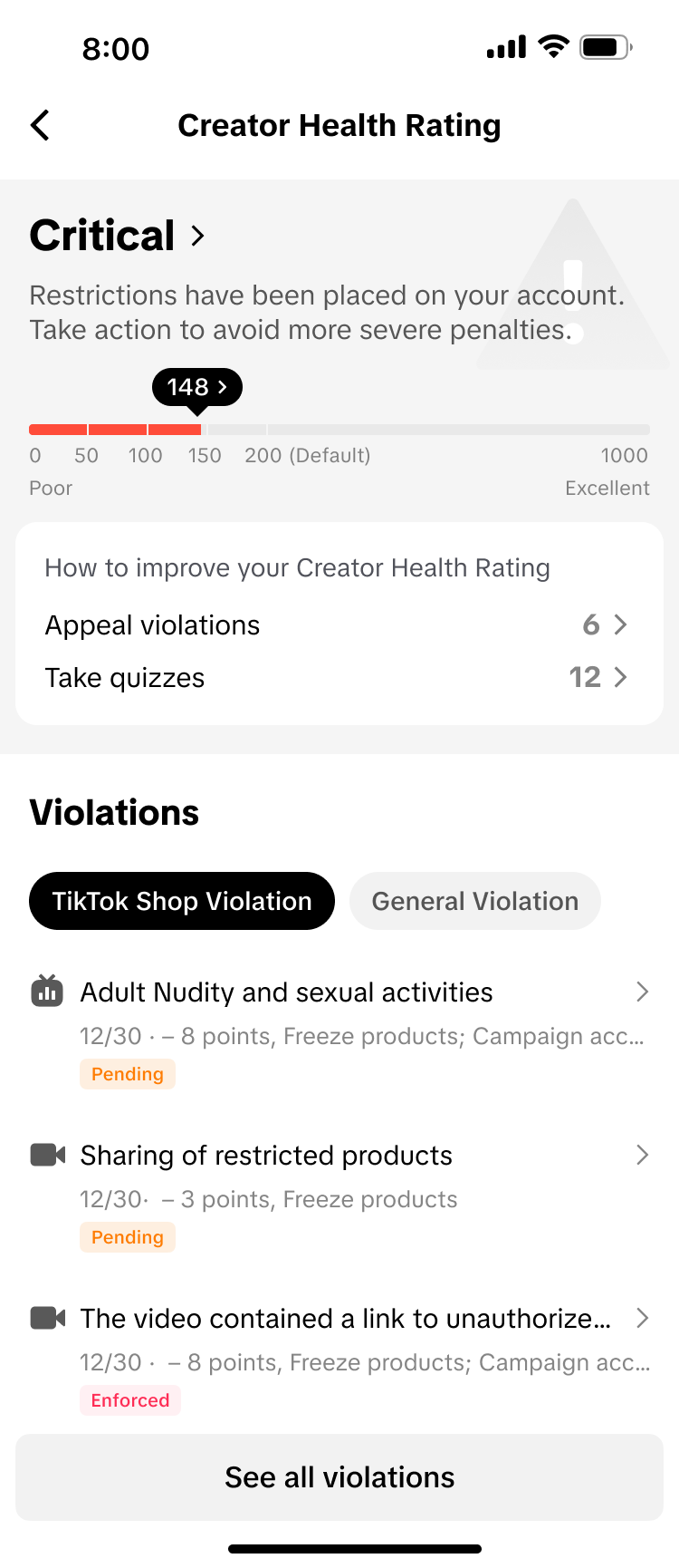 达人规则考试这项功能旨在帮助达人更好地了TikTok Shop 政策规则。达人可通过参加达人规则考试,赚取达人健康分。